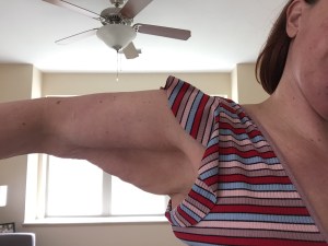My ams are not the only thing! My stomach and sides are not looking so great. My thighs are showing signs of loose skin. My stomach and sides I can hide and not show. But my thighs and arms if I choose to wear shorts or short-sleeves or even sleeveless I can not hide.