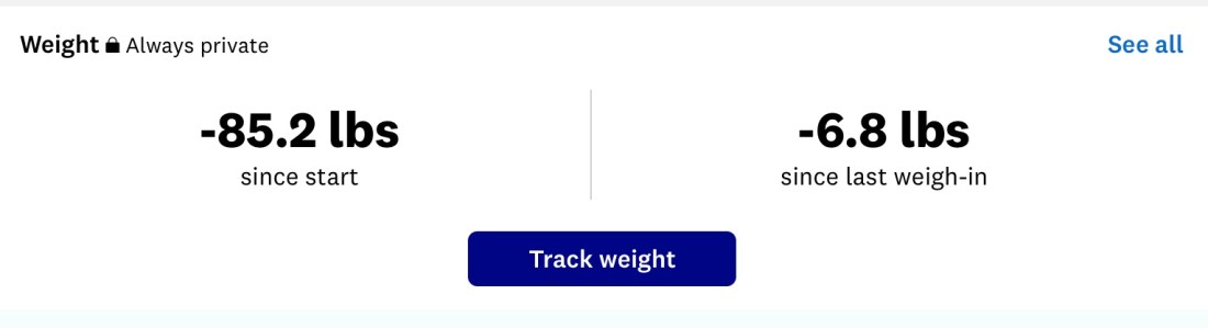 Setting these goals holds me accountable and keeps me on track. I need small attainable goals that help me move toward my larger goals. Now, I have been following WW since December 2017, everyone losses at their own pace. My journey is just that it is mine.